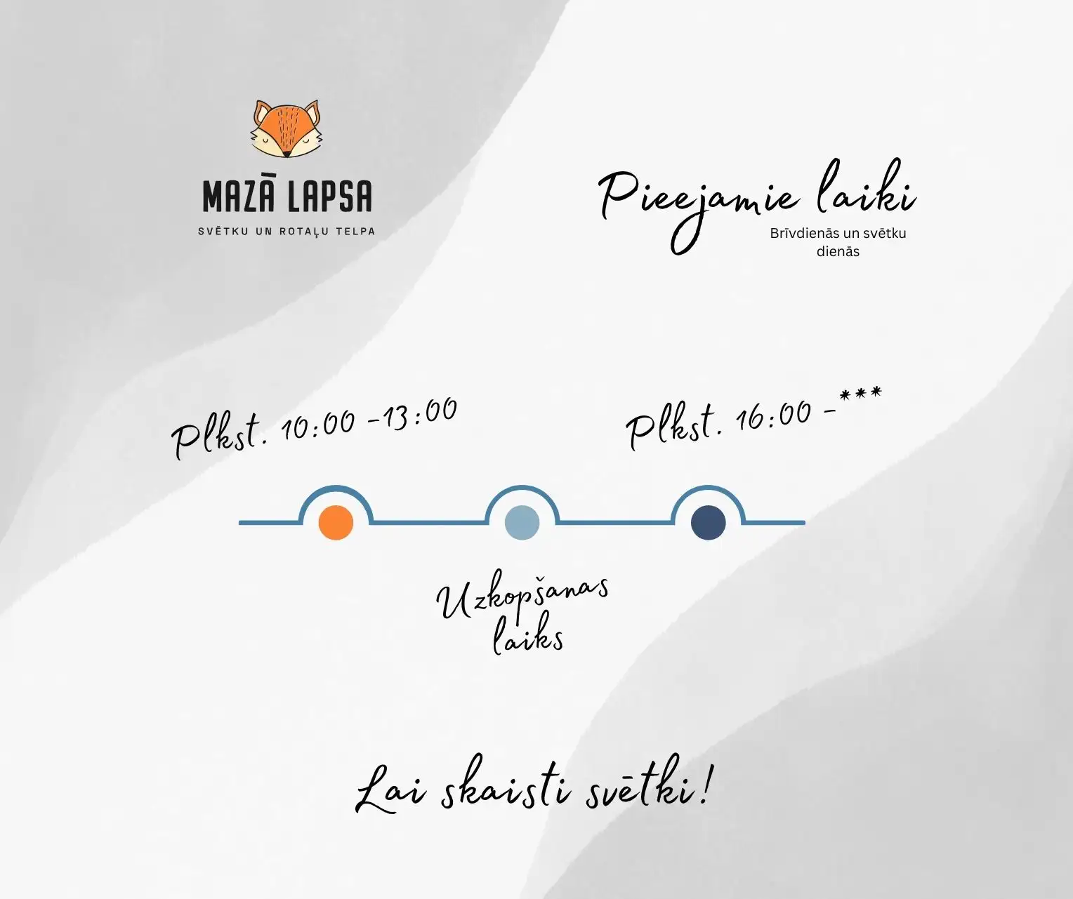 “Mazā Lapsa” dievina ballītes un ciemiņus! Mēs esam parūpējušies, lai ciemošanās būtu maksimāli ērta kā svinētājiem, tā ballītes organizatoriem. Virtuvītē ir viss nepieciešamais, lai veiktu pēdējos priekšdarbus svētku galda sagatavošanā, uz vietas pieejams ūdens, tēja un kafijas automāts ar gardām kafijas pupiņām.